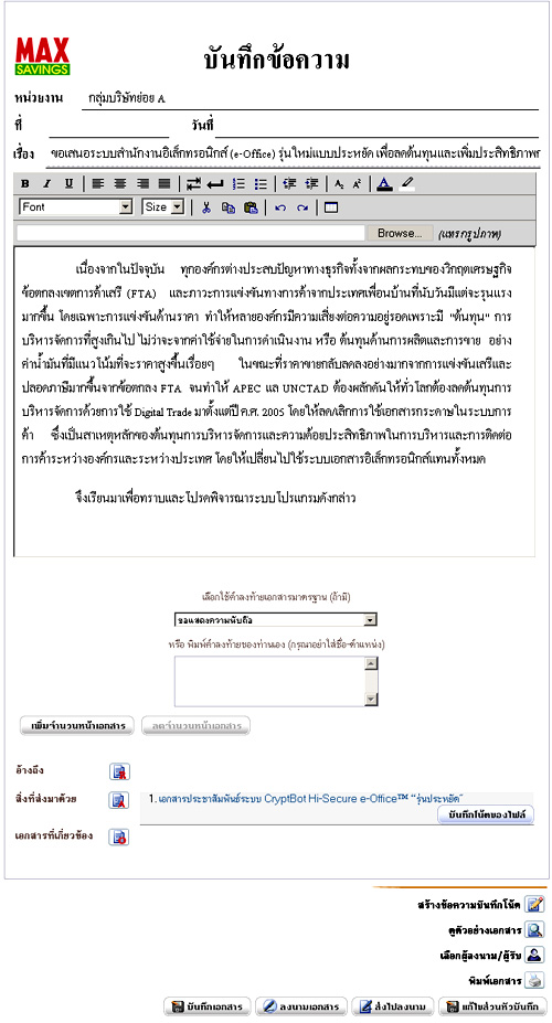 ตัวอย่างหน้าจอ ระบบแบบฟอร์มและสร้างเอกสารอิเล็กทรอนิกส์