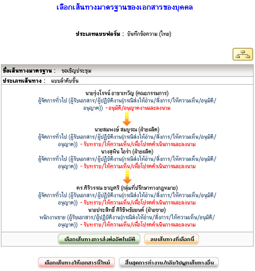 ตัวอย่างเส้นทางเดินเอกสารแบบ e-Workflow ที่สร้างไว้ล่วงหน้าสำหรับการส่งเอกสารอิเล็กทรอนิกส์ที่ใช้ประจำ