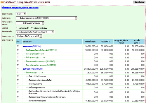 ตัวอย่างหน้าจอ ระบบขอใช้ จอง ผูกพัน และตัดจ่ายงบประมาณ
