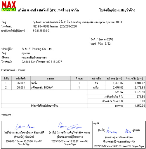 ภาพแสดงหน้าจอแบบฟอร์มการจัดทำใบสั่งซื้อ