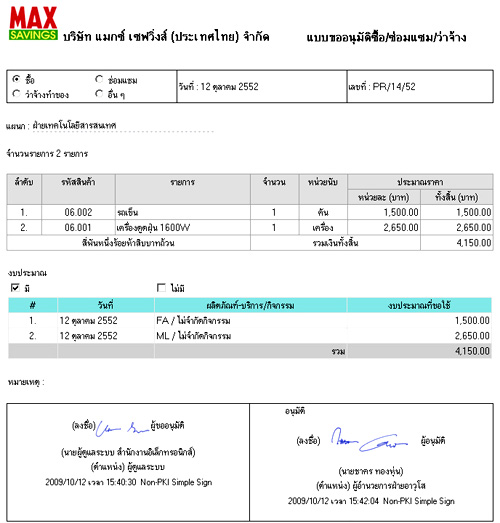 ตัวอย่างหน้าจอ ระบบการจัดทำเอกสารขออนุมัติจัดซื้อ-จัดจ้าง