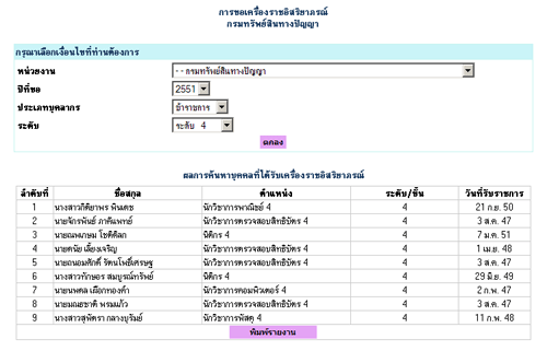 ภาพแสดงหน้าจอค้นผู้ได้รับเครื่องราชอิสริยาภรณ์ในระดับต่างๆ