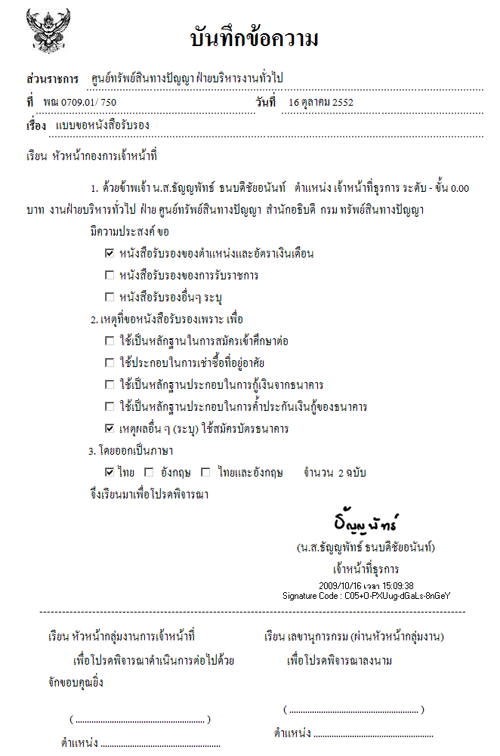 ส่วนการลงนามรับรองในหนังสือ สามารถเลือกที่จะลงนามในระบบหรือพิมพ์ออกมาเป็นกระดาษมาลงนามด้วยปากกาภายนอกระบบก็ได้