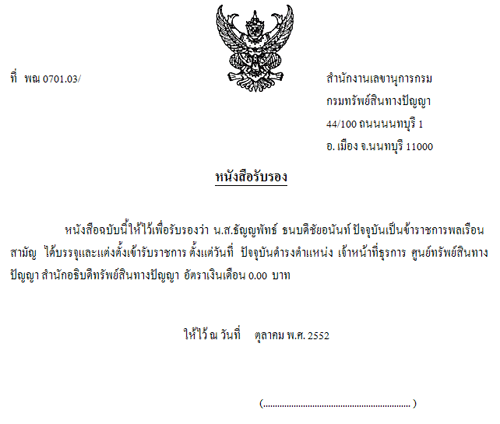 การขอหนังสือรับรองต่างๆ เช่น หนังสือรับรองเงินเดือน หนังสือรับรองการทำงาน ทั้งภาษาไทยและอังกฤษ สามารถทำผ่าน e-Form ที่เป็นแบบคำขอหนังสือรับรองโดยเฉพาะได้ ซึ่งผู้ขอสามารถระบุวัตถุประสงค์ที่จะนำหนังสือรับรองไปใช้งานได้ เช่น เพื่อศึกษาต่อ หรือ เพื่อขอสินเชื่อจากธนาคาร หรือ เพื่อขอมีบัตรเครดิต เป็นต้น